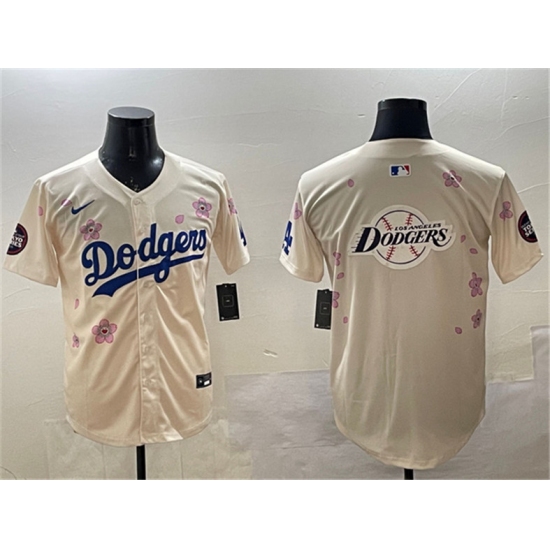 >Men's Los Angeles Dodgers Team Big Logo Cream 2025 Tokyo Series Limited Stitched Baseball Jersey