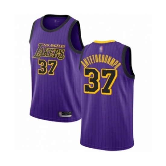 >Men's Los Angeles Lakers #37 Kostas Antetokounmpo Authentic Purple Basketball Jersey - City Edition