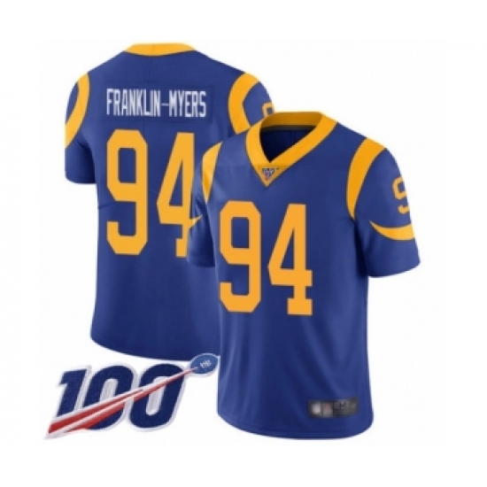 >Men's Los Angeles Rams #94 John Franklin-Myers Royal Blue Alternate Vapor Untouchable Limited Player 100th Season Football Jersey