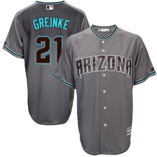 Home>MLB>Arizona Diamondbacks>Zack Greinke>Men's Majestic Arizona Diamondbacks #21 Zack Greinke Authentic Gray/Turquoise Cool Base MLB Jersey