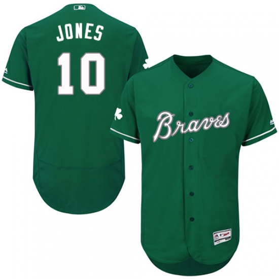 Home>MLB>Atlanta Braves>Chipper Jones>Men's Majestic Atlanta Braves #10 Chipper Jones Green Celtic Flexbase Authentic Collection MLB Jersey