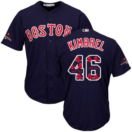 Men's Majestic Boston Red Sox #46 Craig Kimbrel Authentic Navy Blue Team Logo Fashion Cool Base 2018 World Series Champions MLB Jersey