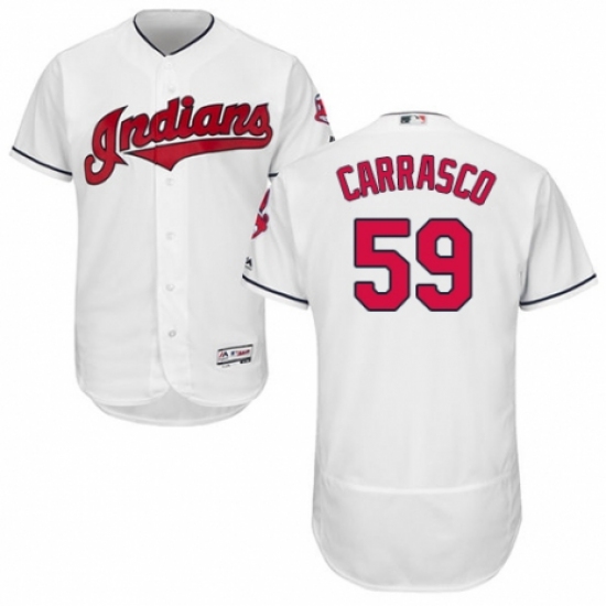 Men's Majestic Cleveland Indians #59 Carlos Carrasco White Home Flex Base Authentic Collection MLB Jersey