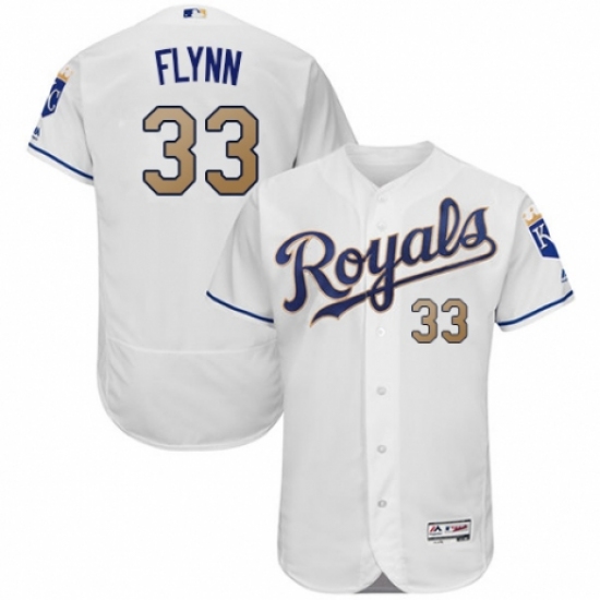 >Men's Majestic Kansas City Royals #33 Brian Flynn White Flexbase Authentic Collection MLB Jersey