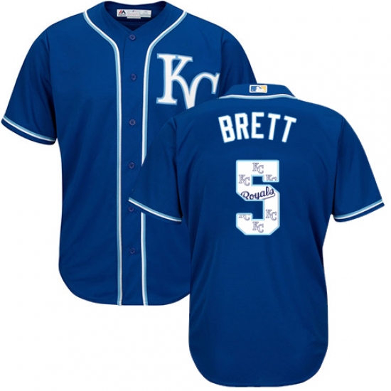 Men's Majestic Kansas City Royals #5 George Brett Authentic Blue Team Logo Fashion Cool Base MLB Jersey
