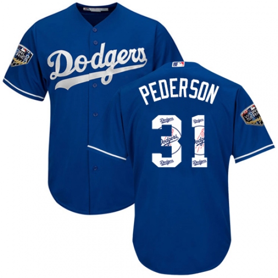 Men's Majestic Los Angeles Dodgers #31 Joc Pederson Authentic Royal Blue Team Logo Fashion Cool Base 2018 World Series MLB Jersey