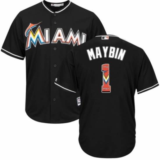 Men's Majestic Miami Marlins #1 Cameron Maybin Authentic Black Team Logo Fashion Cool Base MLB Jersey