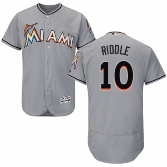 >Men's Majestic Miami Marlins #10 JT Riddle Grey Road Flex Base Authentic Collection MLB Jersey