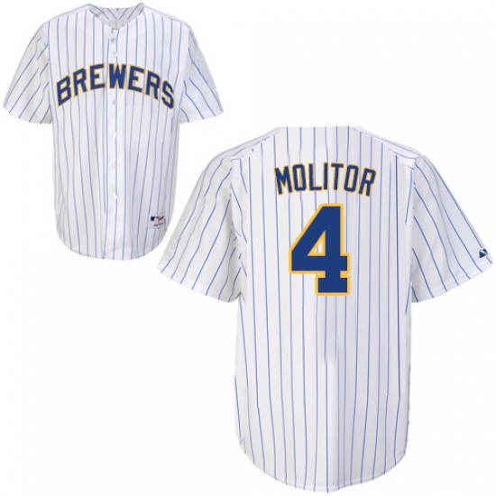 Men's Majestic Milwaukee Brewers #4 Paul Molitor Authentic White (blue strip) MLB Jersey