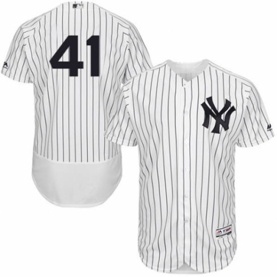 >Men's Majestic New York Yankees #41 Miguel Andujar White Home Flex Base Authentic Collection MLB Jersey