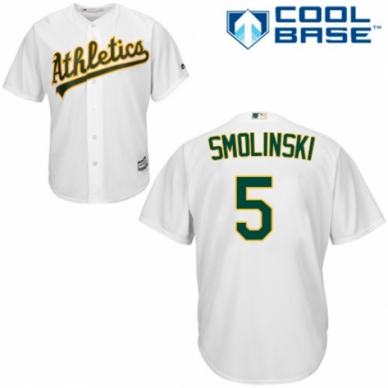 Men's Majestic Oakland Athletics #5 Jake Smolinski Replica White Home Cool Base MLB Jersey