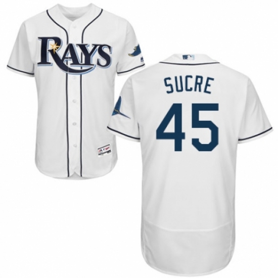 Men's Majestic Tampa Bay Rays #45 Jesus Sucre Home White Home Flex Base Authentic Collection MLB Jersey
