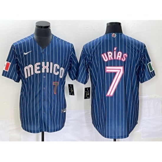 Men's Mexico Baseball #7 Julio Urias Number Navy Blue Pinstripe 2020 World Series Cool Base Nike Jersey2