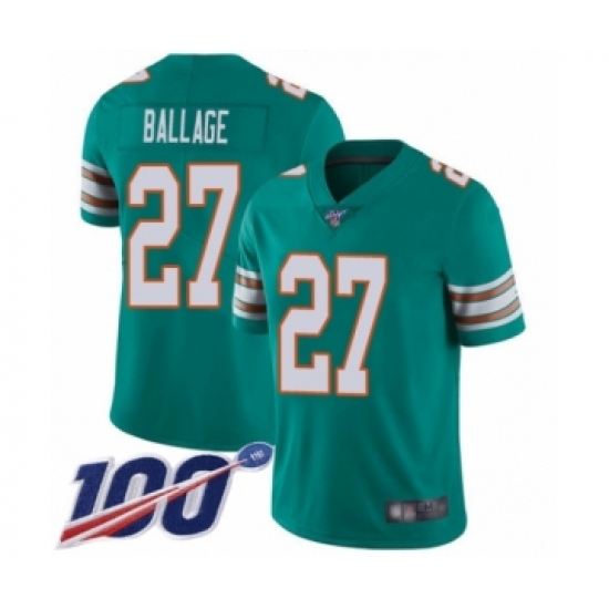 Men's Miami Dolphins #27 Kalen Ballage Aqua Green Alternate Vapor Untouchable Limited Player 100th Season Football Jersey