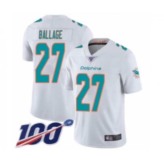 Men's Miami Dolphins #27 Kalen Ballage White Vapor Untouchable Limited Player 100th Season Football Jersey