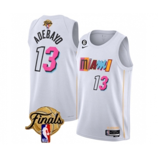 Men's Miami Heat #13 Bam Adebayo White 2023 Finals City Edition With NO.6 Stitched Basketball Jersey