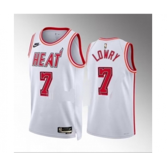 Men's Miami Heat #7 Kyle Lowry White Classic Edition Stitched Basketball Jersey
