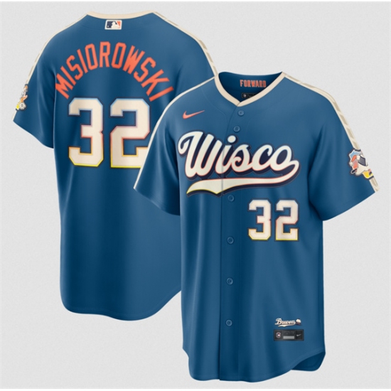 Men's Milwaukee Brewers #32 Jacob Misiorowski Mineral Blue 2026 City Connect Stadium Stitched Stitched Baseball Jersey