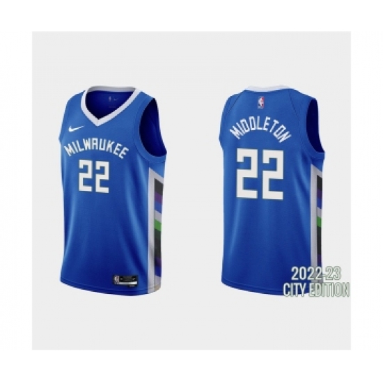 Men's Milwaukee Bucks #22 Khris Middleton 2022-23 City Edition Blue Stitched Basketball Jersey