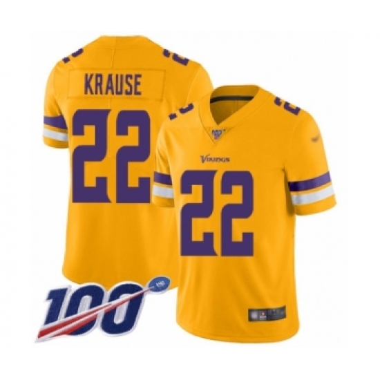 Men's Minnesota Vikings #22 Paul Krause Limited Gold Inverted Legend 100th Season Football Jersey