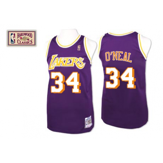 Men's Mitchell and Ness Los Angeles Lakers #34 Shaquille O'Neal Authentic Purple Throwback NBA Jersey
