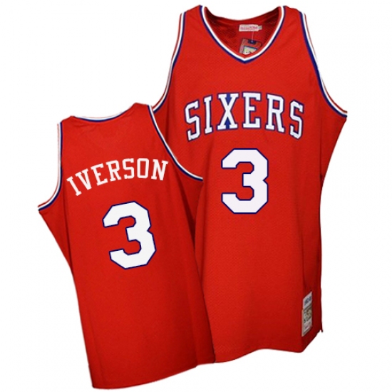 Men's Mitchell and Ness Philadelphia 76ers #3 Allen Iverson Swingman Red Throwback NBA Jersey