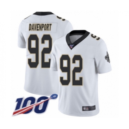 Men's New Orleans Saints #92 Marcus Davenport White Vapor Untouchable Limited Player 100th Season Football Jersey