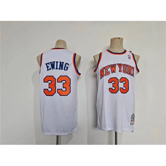 Men's New Yok Knicks #33 Patrick Ewing White Throwback Stitched Jersey