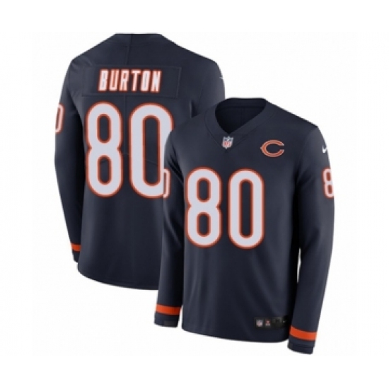 Men's Nike Chicago Bears #80 Trey Burton Limited Navy Blue Therma Long Sleeve NFL Jersey