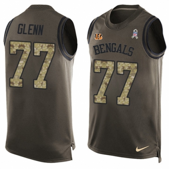 >Men's Nike Cincinnati Bengals #77 Cordy Glenn Limited Green Salute to Service Tank Top NFL Jersey