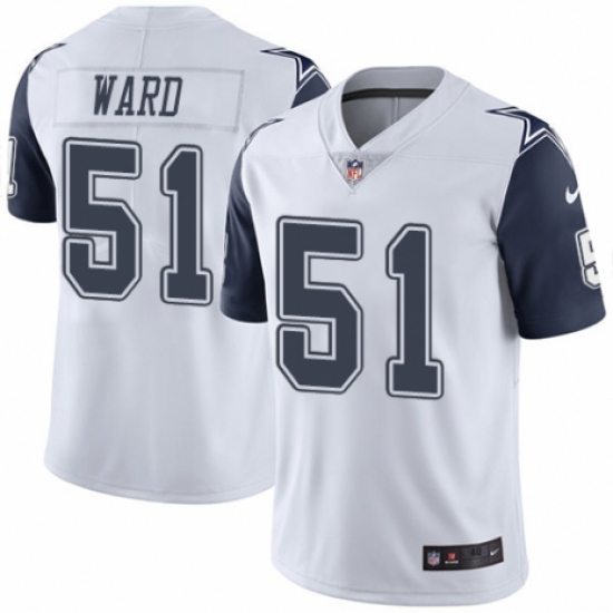 >Men's Nike Dallas Cowboys #51 Jihad Ward Limited White Rush Vapor Untouchable NFL Jersey