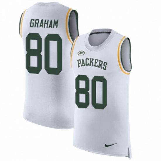 >Men's Nike Green Bay Packers #80 Jimmy Graham White Rush Player Name & Number Tank Top NFL Jersey