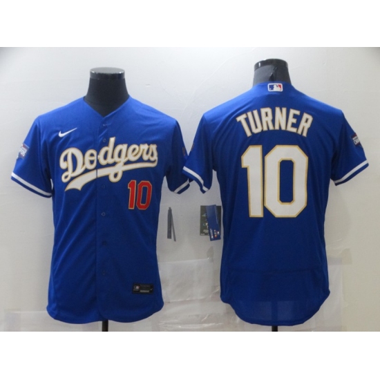 Men's Nike Los Angeles Dodgers #10 Justin Turner Blue Elite Game Champions Authentic Jersey