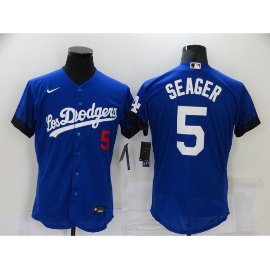 Men's Nike Los Angeles Dodgers #5 Corey Seager Blue Elite City Player Jersey