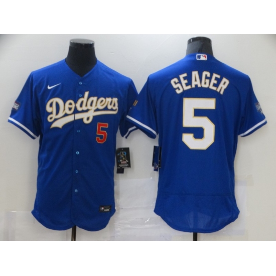Men's Los Angeles Dodgers #5 Corey Seager Royal 2020 World Series Replica Jersey