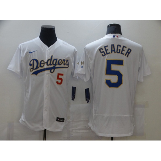 Men's Los Angeles Dodgers #5 Corey Seager White 2020 World Series Replica Jersey