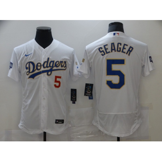 Men's Nike Los Angeles Dodgers #5 Corey Seager White Game Champions Jersey