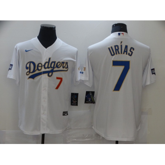 >Men's Nike Los Angeles Dodgers #7 Julio Urias White Game Champions Authentic Jersey