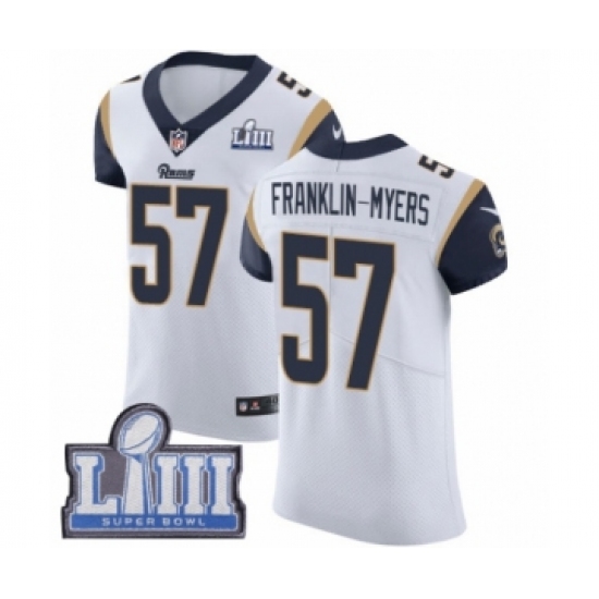>Men's Nike Los Angeles Rams #57 John Franklin-Myers White Vapor Untouchable Elite Player Super Bowl LIII Bound NFL Jersey