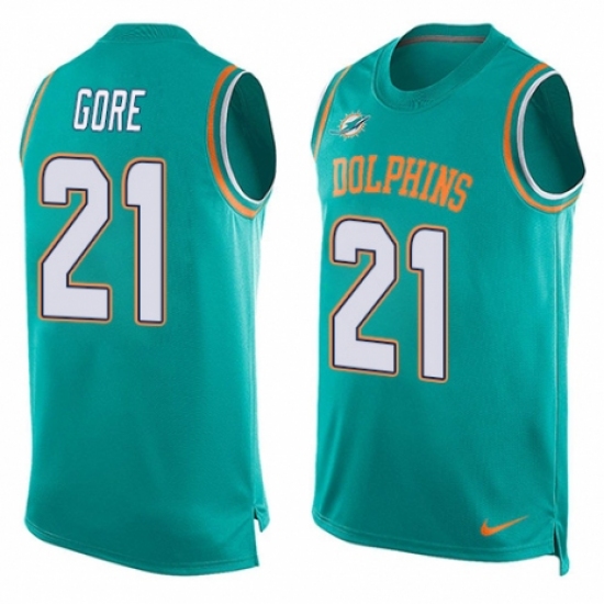 Men's Nike Miami Dolphins #21 Frank Gore Limited Aqua Green Player Name & Number Tank Top NFL Jersey