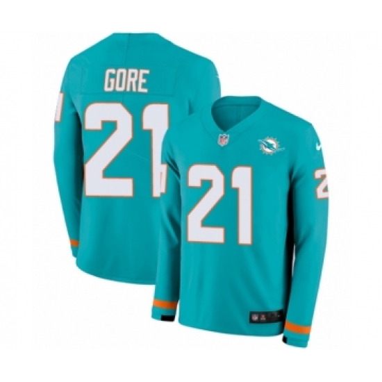 Men's Nike Miami Dolphins #21 Frank Gore Limited Aqua Therma Long Sleeve NFL Jersey