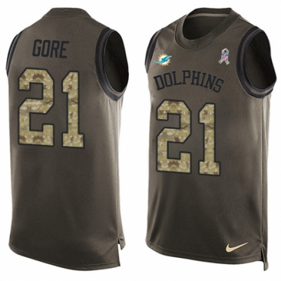 >Men's Nike Miami Dolphins #21 Frank Gore Limited Green Salute to Service Tank Top NFL Jersey