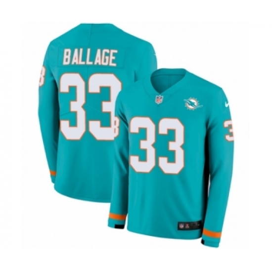 Men's Nike Miami Dolphins #33 Kalen Ballage Limited Aqua Therma Long Sleeve NFL Jersey