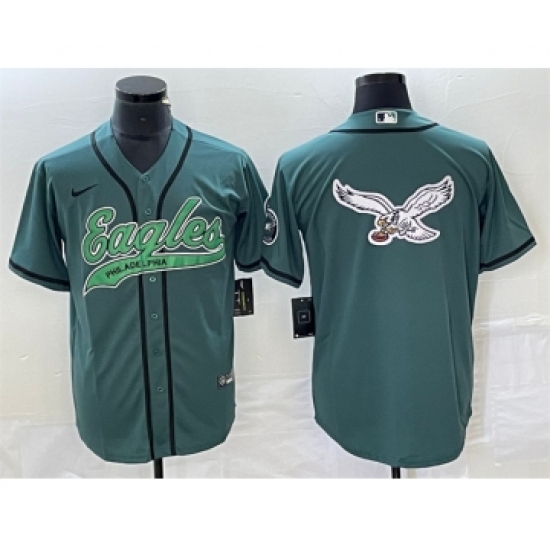 Men's Nike Philadelphia Eagles Green Team Big Logo Cool Base Stitched Baseball Jersey