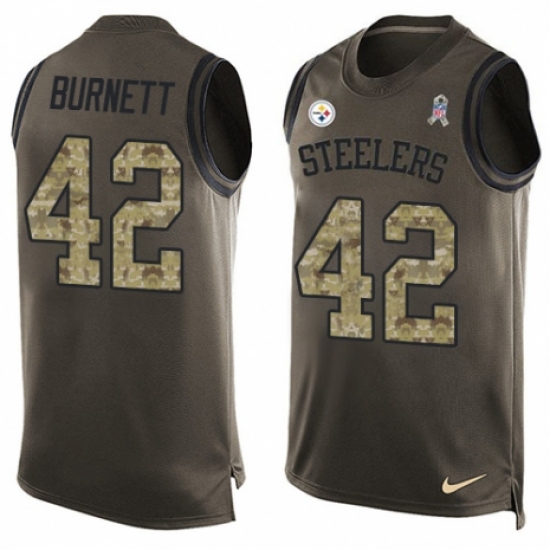 Men's Nike Pittsburgh Steelers #42 Morgan Burnett Limited Green Salute to Service Tank Top NFL Jersey
