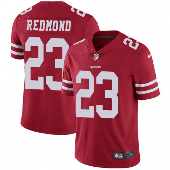 Home>NFL>San Francisco 49ers>Will Redmond>Men's Nike San Francisco 49ers #23 Will Redmond Red Team Color Vapor Untouchable Limited Player NFL Jersey