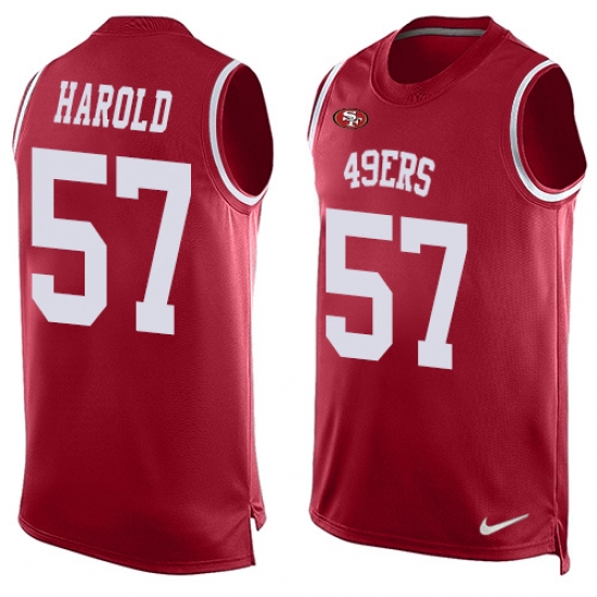 Home>NFL>San Francisco 49ers>Eli Harold>Men's Nike San Francisco 49ers #57 Eli Harold Limited Red Player Name & Number Tank Top NFL Jersey