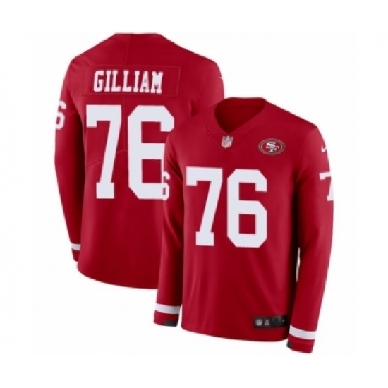 Men's Nike San Francisco 49ers #76 Garry Gilliam Limited Red Therma Long Sleeve NFL Jersey
