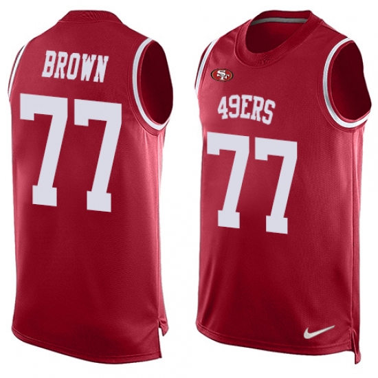 Men's Nike San Francisco 49ers #77 Trent Brown Limited Red Player Name & Number Tank Top NFL Jersey