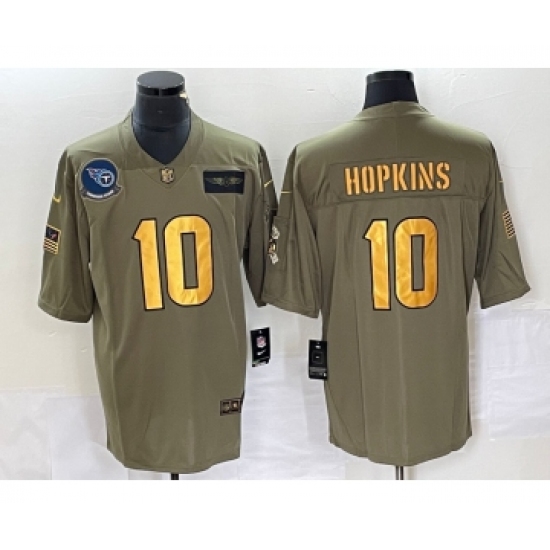 >Men's Nike Tennessee Titans #10 DeAndre Hopkins Olive Gold 2019 Salute To Service Stitched Limited Jersey